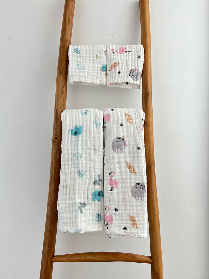 The open weave of the muslin creates a beautifully soft and slightly crinkled texture that becomes even gentler with each wash. Lightweight and breathable, it's perfect for drying delicate skin. Choose from a selection of adorable prints or classic solid hues to add a touch of HYMY's gentle care to your daily routine.